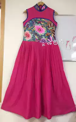 Cloud decoration totem original design women's dress hand-embroidered silk satin national style spring and summer new peony skirt