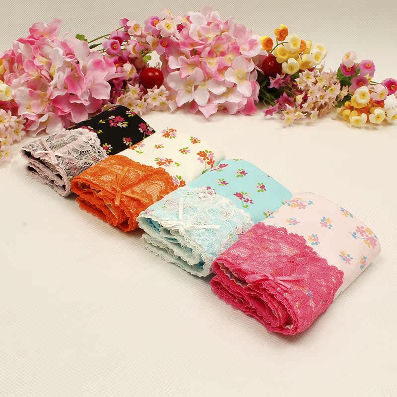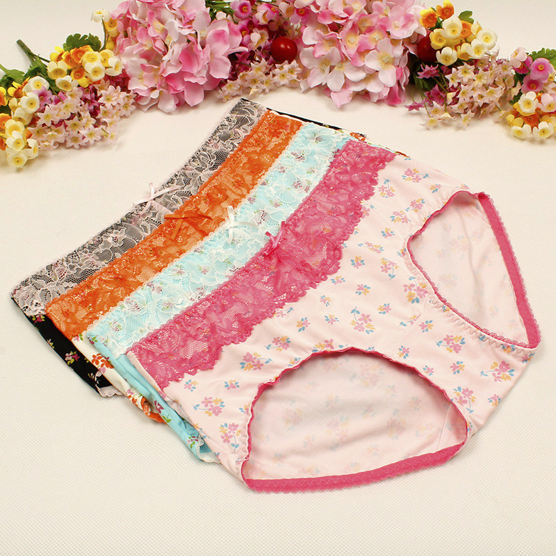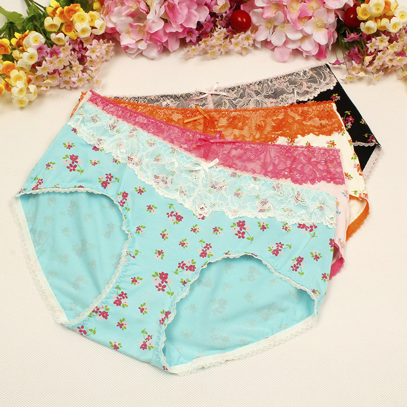 Di Anfen underwear women's boxer hips lace edge sexy comfortable soft breathable mid-waist printing elastic