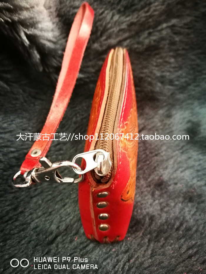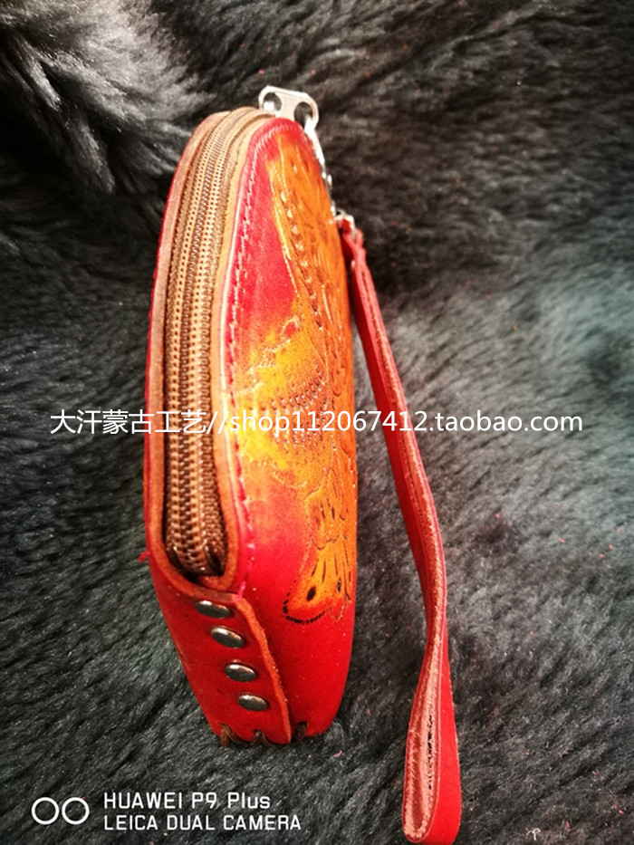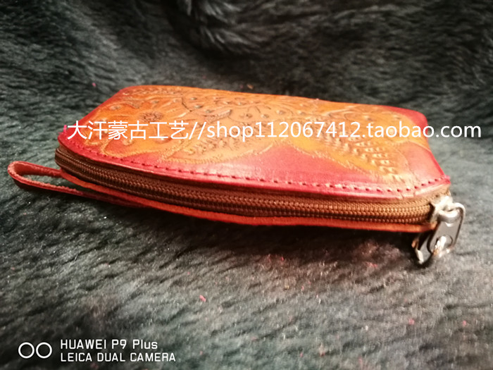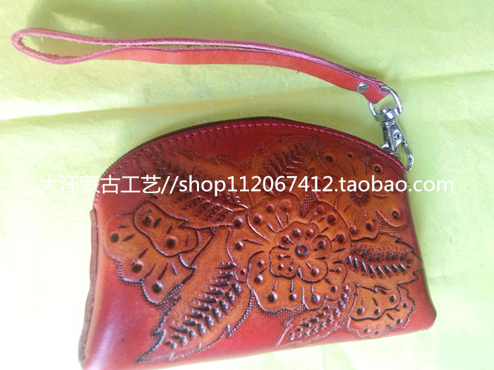 Mongolian Element Zero Wallet Sculpture Flower Crafts Mongolian Printed Pattern Pure Cow Leather Lady Wallet Hand Grip Bag