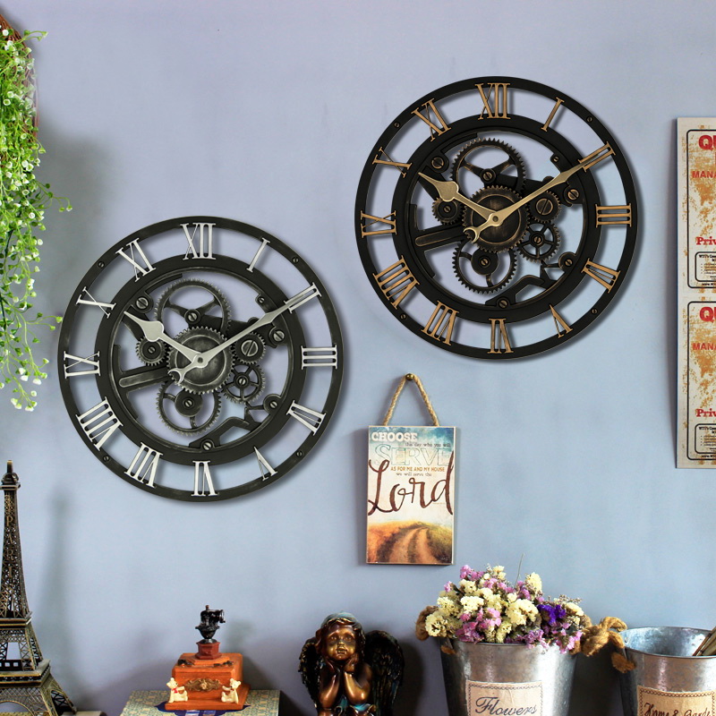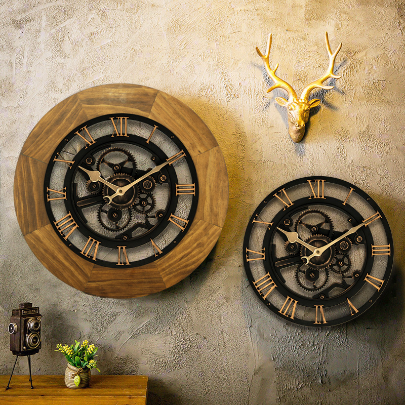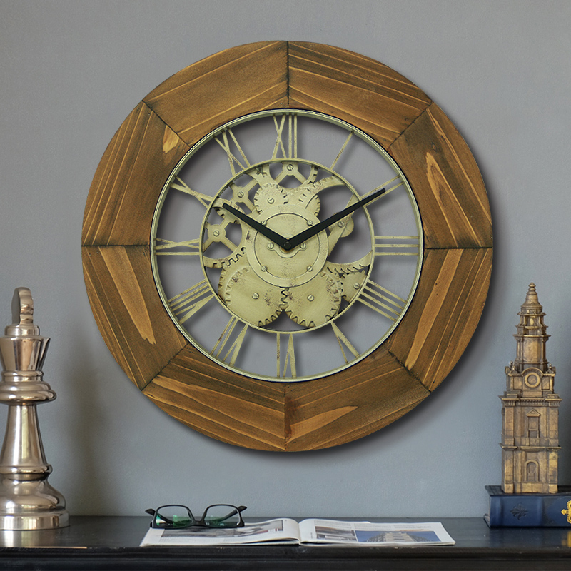 19 inch wood gear wall clock (embroidered) 19 5 wood gear wall clock (gold) 16 inch antique color clock with 16 inch gold plus wood hanging clock 16 inches silver stainless rust and wood