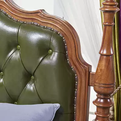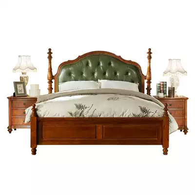 American country solid wood double bed 1 8 meters solid wood Roman column leather back bed Jane Mei wedding bed new