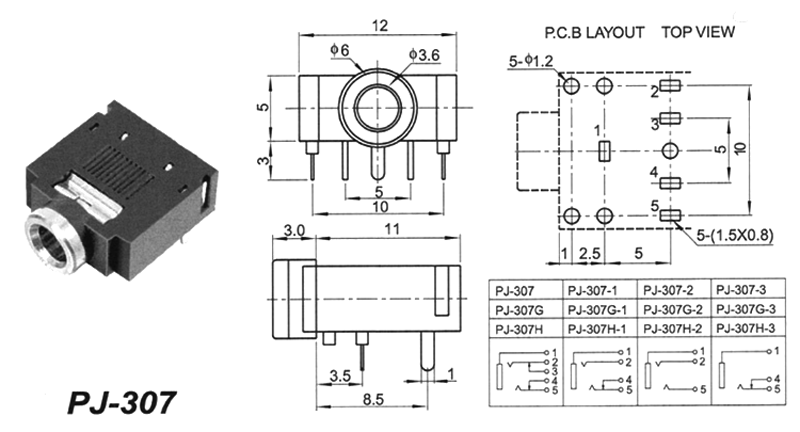 Headphone socket 3 5 audio socket PJ-3F07 5 feet straight inserts copper head 3 5 headphone mother seat PJ-307