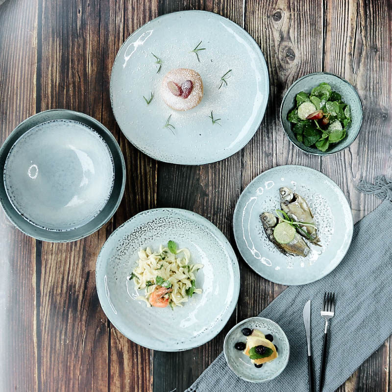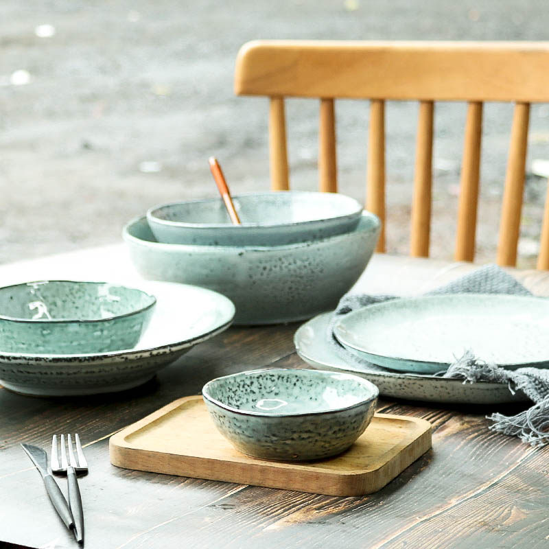 Pockmark Cup 4.5 inch Pockmark Small Bowl 5.2 inch Pockmark Dark Bowl 5.5 inch Salad Bowl 7.5 inch Special-shaped Scrub Bottom Bowl 8 Inch Disc 8.3 Inch Stripe Bowl 9 Inch Shaped Dark Disc 9.5 Inch Bucket Tray 10.5 Inch Plate 11 inch Blue Gray Shaped Plate 9 inch Gray Hemp Dot Plate