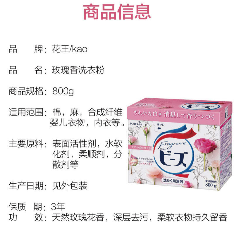 Japan imported kao Kao washing powder natural enzyme rosehip flavor A spoonful of spirit 800g no fluorescent agent