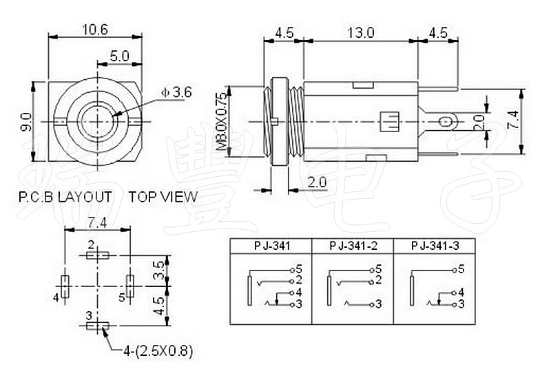 PJ341-4P foot stereo style 3 5 headphone socket PJ-341 threaded dual track audio interface mother seat