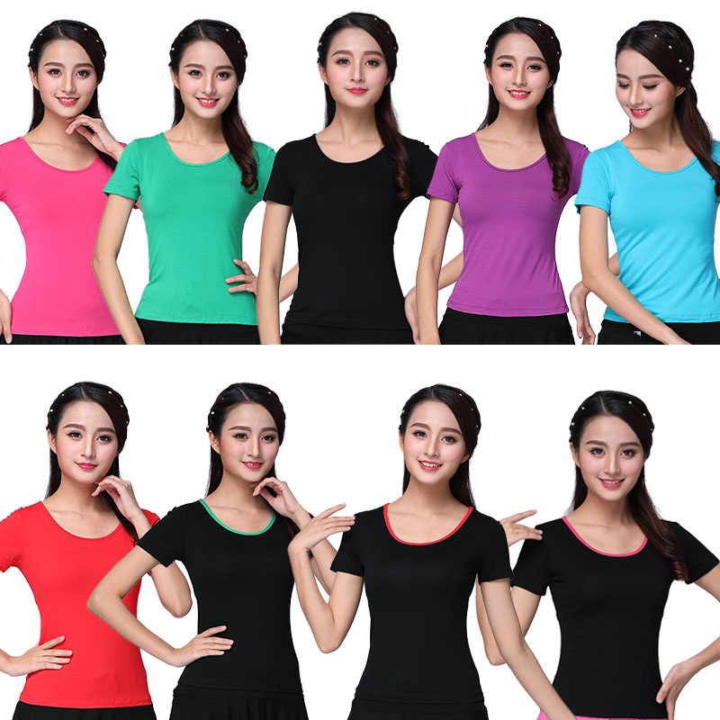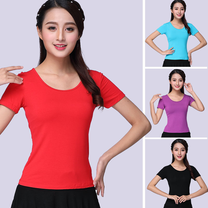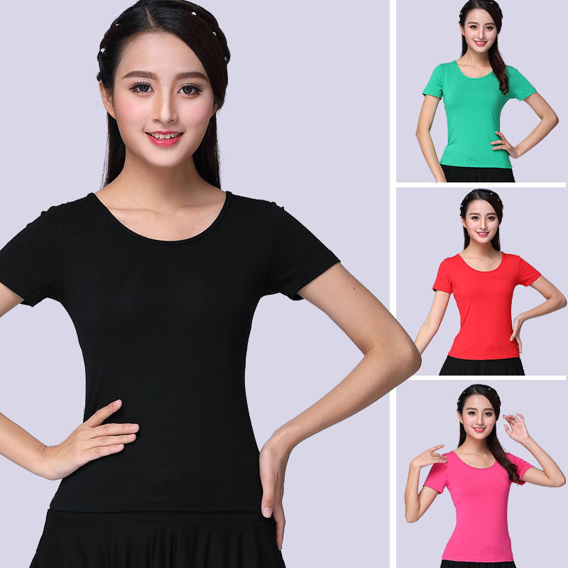 Square Dance Costume Short Sleeve Round collar Modale pure color blouses Latin dance suit Sport practice Dancing Clothes Summer