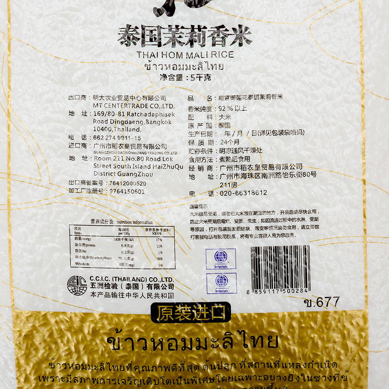 Original imported Thai jasmine rice 5KG royal lotus long grain first-class farmhouse new rice native product