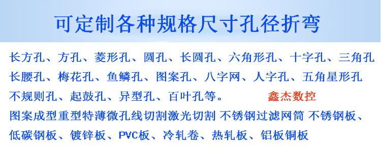 Stainless steel Galvanized plate Iron plate Aluminum plate Copper plate Plastic plate