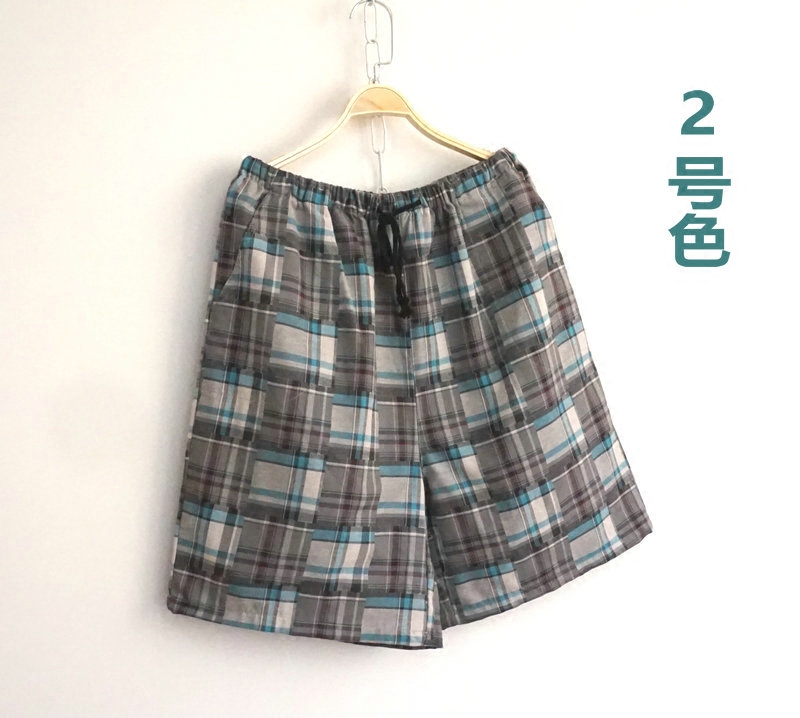 Foreign Trade Men's home pants summer thin cotton double gauze pane shorts 5 minute pajamas beach pants