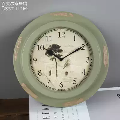 American retro nostalgic wall clock European wall clock Living room creative pastoral silent quartz clock art for old
