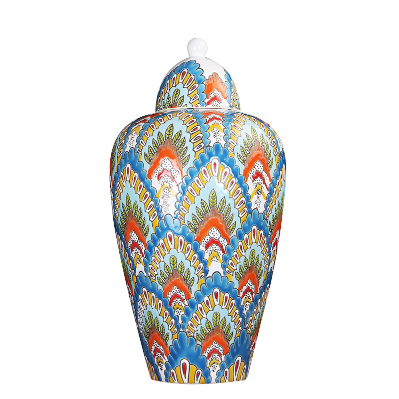 High-grade hand-painted European Chinese peacock ceramic vase decoration painted general jar Modern entrance TV cabinet large