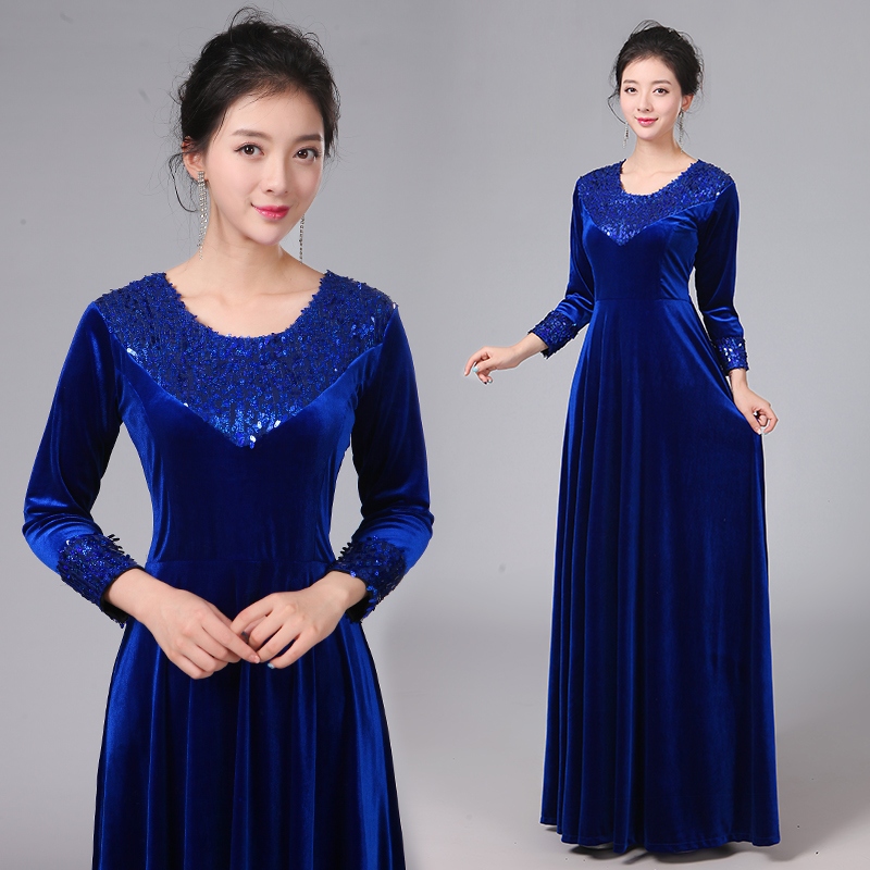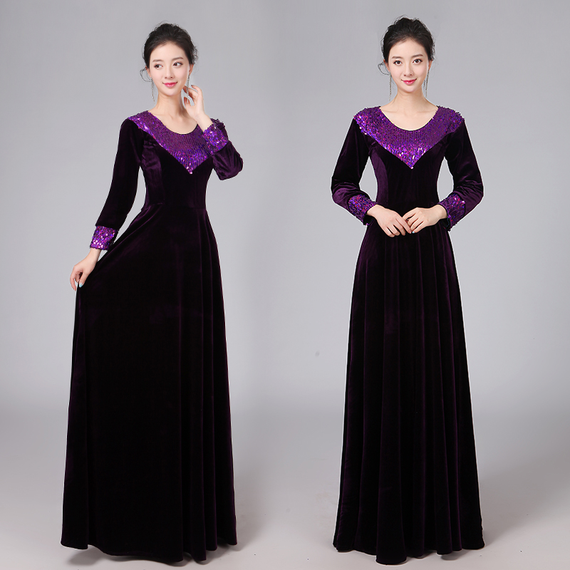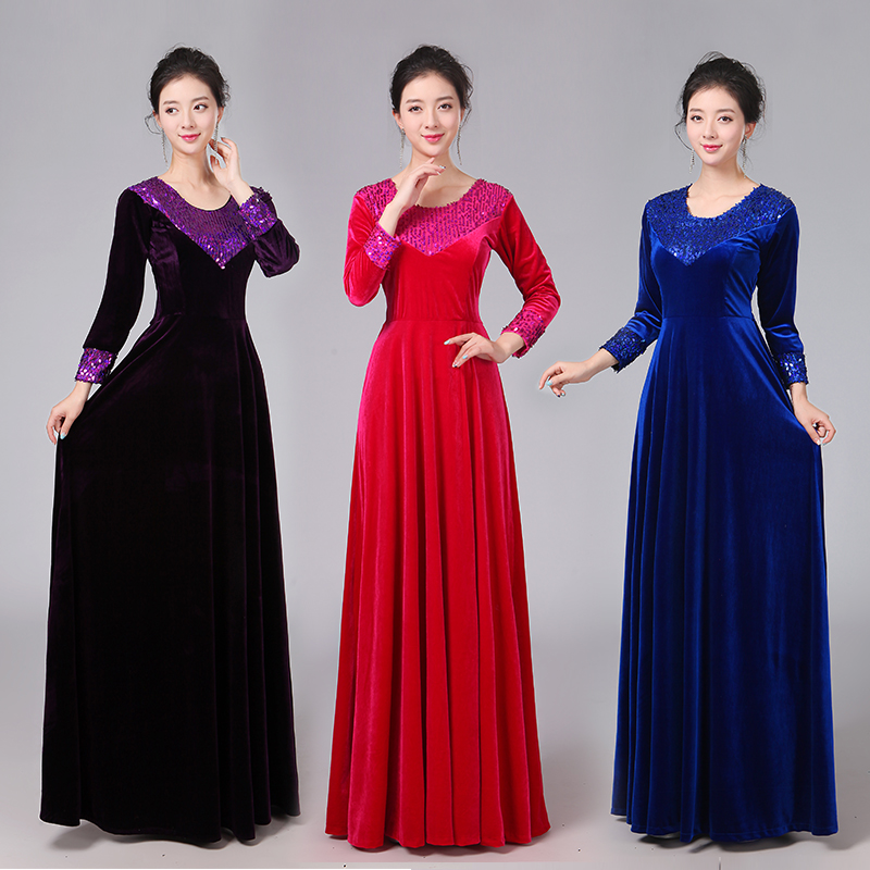 2018 gold velvet new conductor suit chorus dress ladies chorus performance dress long skirt chorus dress dress