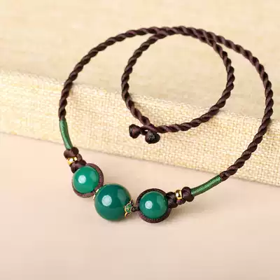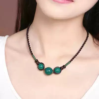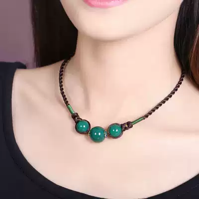 Short clavicle necklace green agate simple retro neck decoration wild clothes accessories ethnic style necklace female