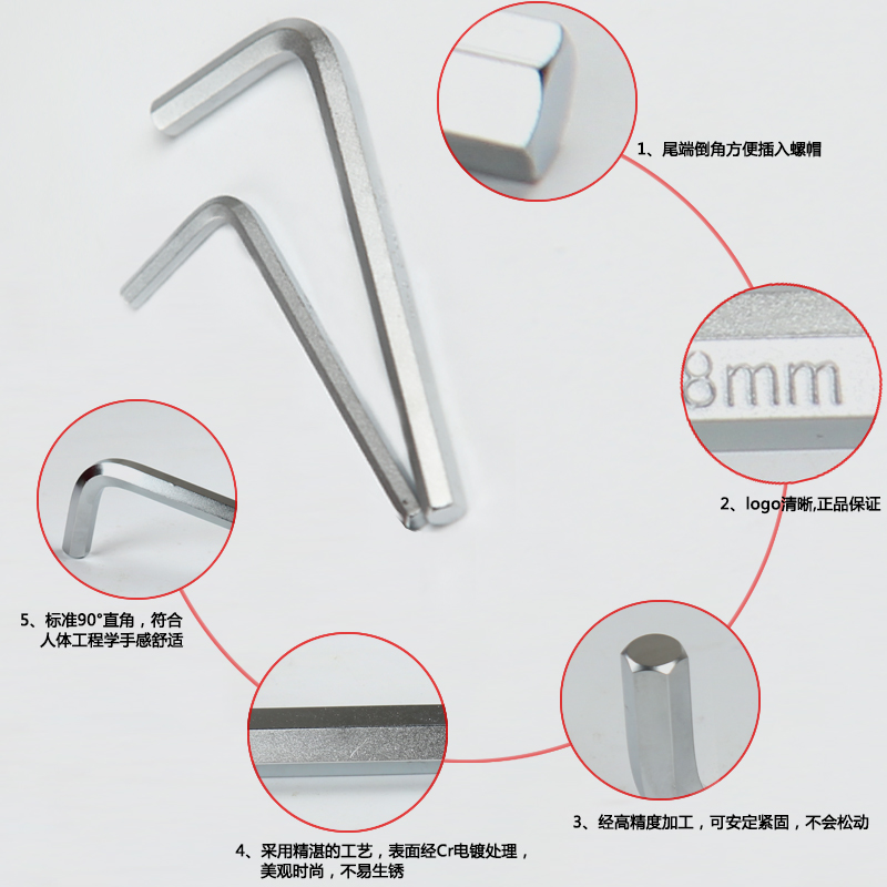 Field Island Inner Hexagon Wrench Male flat head standard long sandblasted inner 6-angle L type inner hexagonal screwdriver repair tool