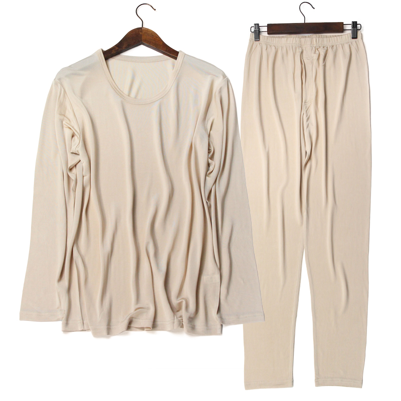 Spring Autumn New 100% Mulberry Silk Men Fever Sweater Pants Round Collar Thin PURE COLOR AUTUMN CLOTHES SANITARY PANTS UNDERWEAR SUIT