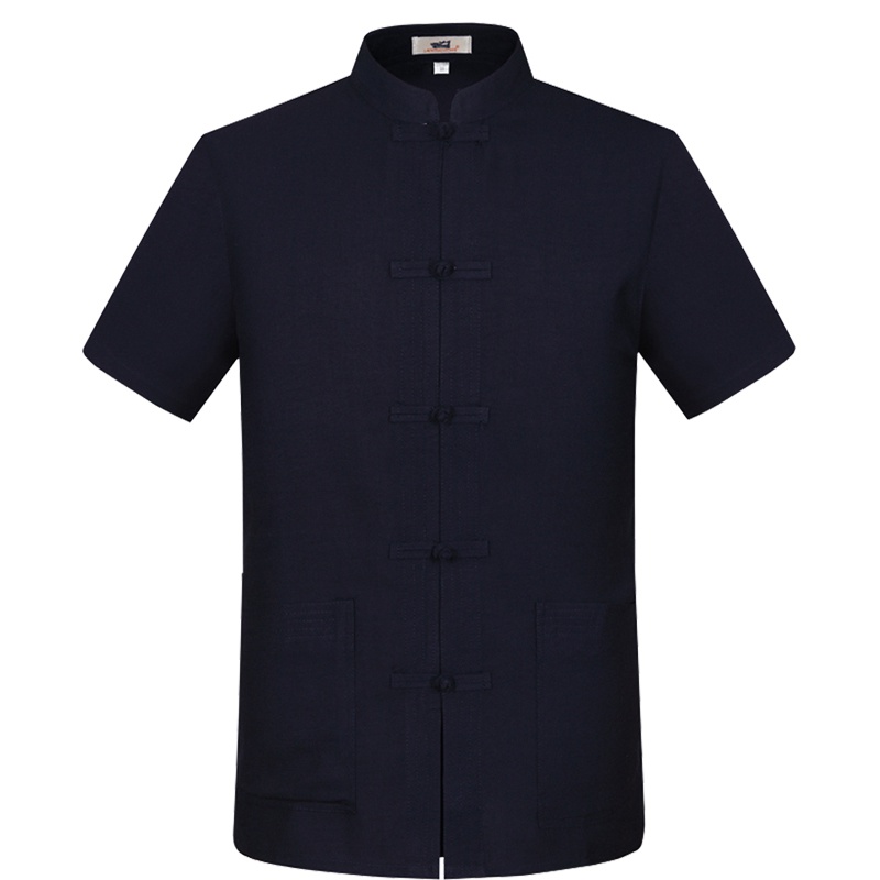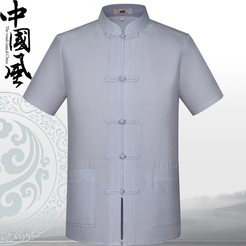 Summer cotton and linen Tang suit men's short-sleeved shirt top Hanfu half-sleeved linen middle-aged and elderly father, layman's suit, grandpa suit