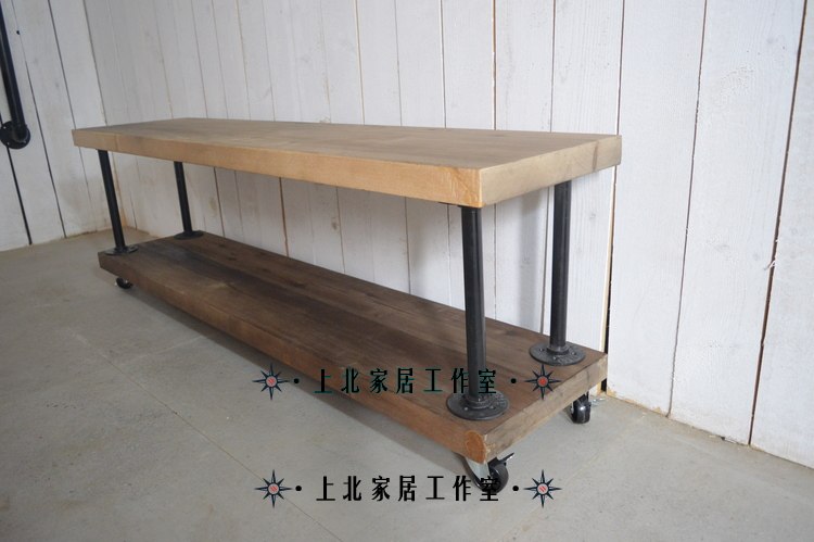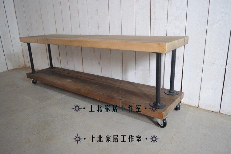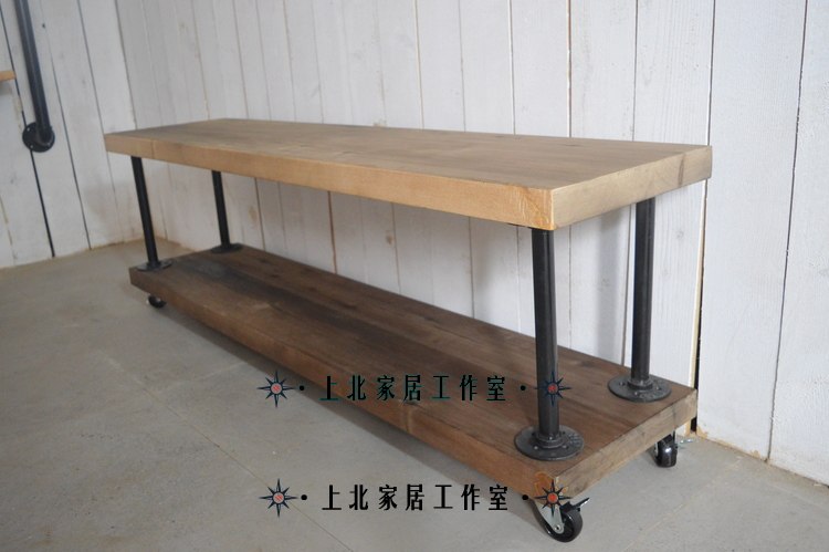 Loft retro American water pipe wrought iron pine living room TV cabinet solid wood locker simple floor TV cabinet