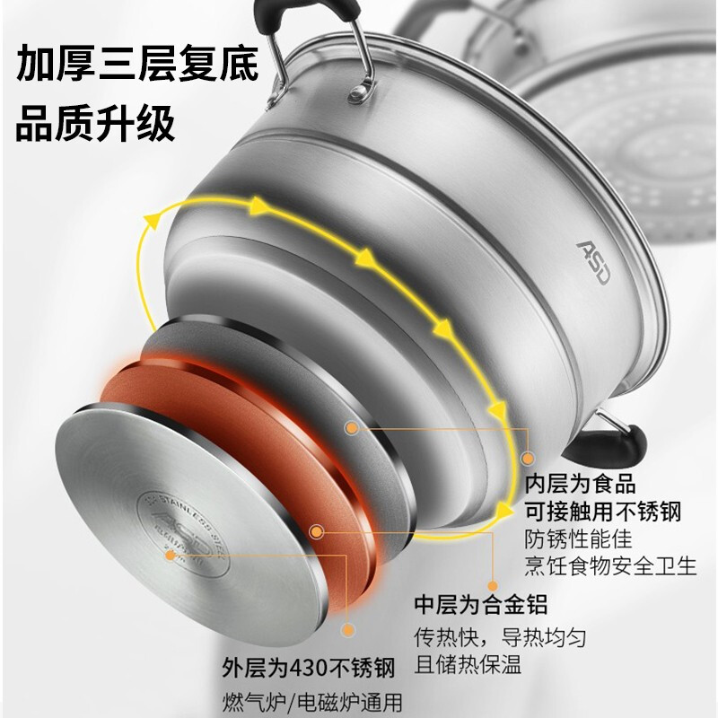 Axstal steam steam steam steam household 26 28 32CM double steam cage thickens three layers of steamed steamed steamed bread