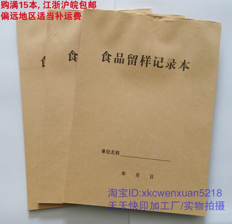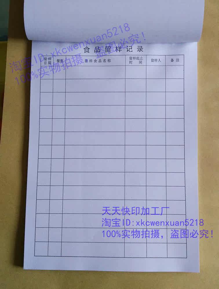 Food sample record book Catering industry canteen sample record form Disinfection record book UV disinfection registration