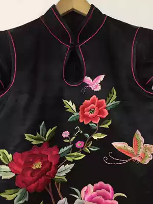 Cloud decoration totem original women's top Western dress Ethnic style hand-embroidered peony stand-up collar literary fan Cheongsam