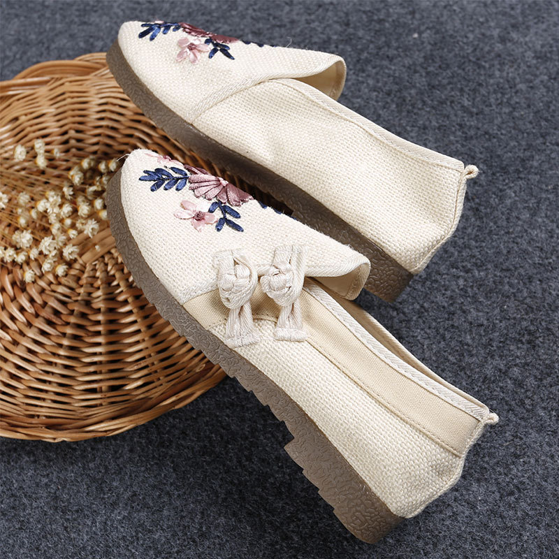 Autumn Winter 2019 new ladies cloth shoes National Wind China Wind Han Elements Retro Art and Art Ancient windy flat Flat Embroidered Shoes