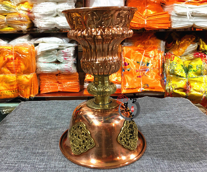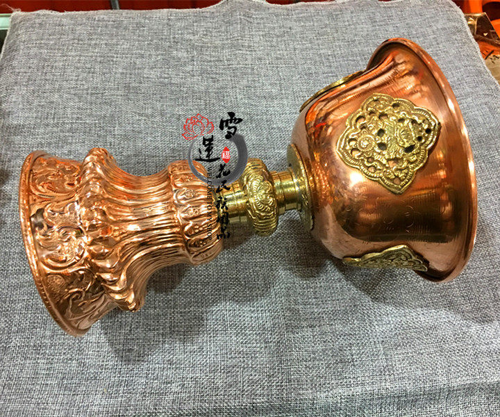 Tibetan-style Nepalese copper butter lamp Babao decal lamp, caliber 12 5 cm