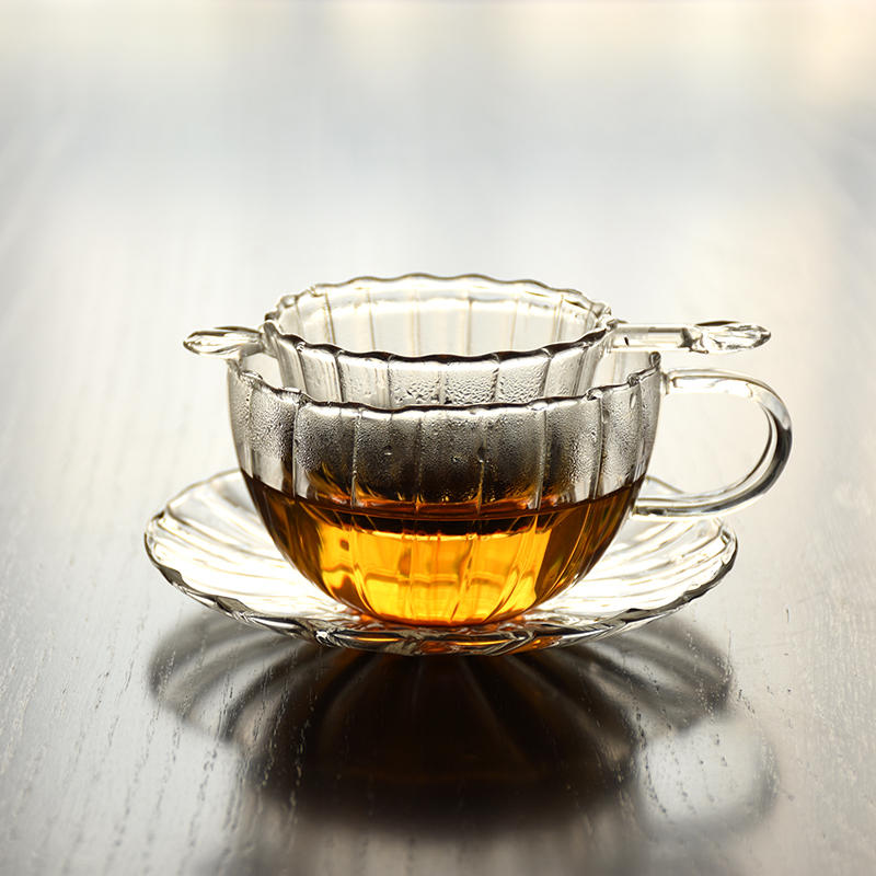 Export Japan Tongan Heat Resistant Glass Filter Tea Filter Yingstyle Lower Afternoon Tea Tea Leak with Tray Retro Stripes