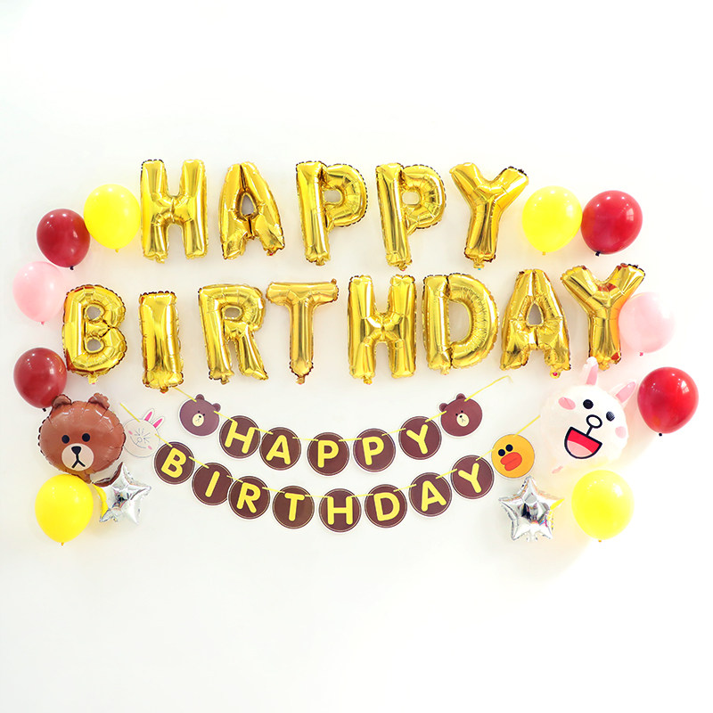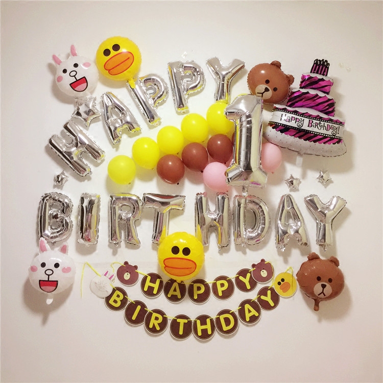 Cartoon Aluminum Film Balloon Background Wall Adult Children Birthday Party Arrangement Decoration South Korea Cartoon Bear Chicken Rabbit Subject-Taobao