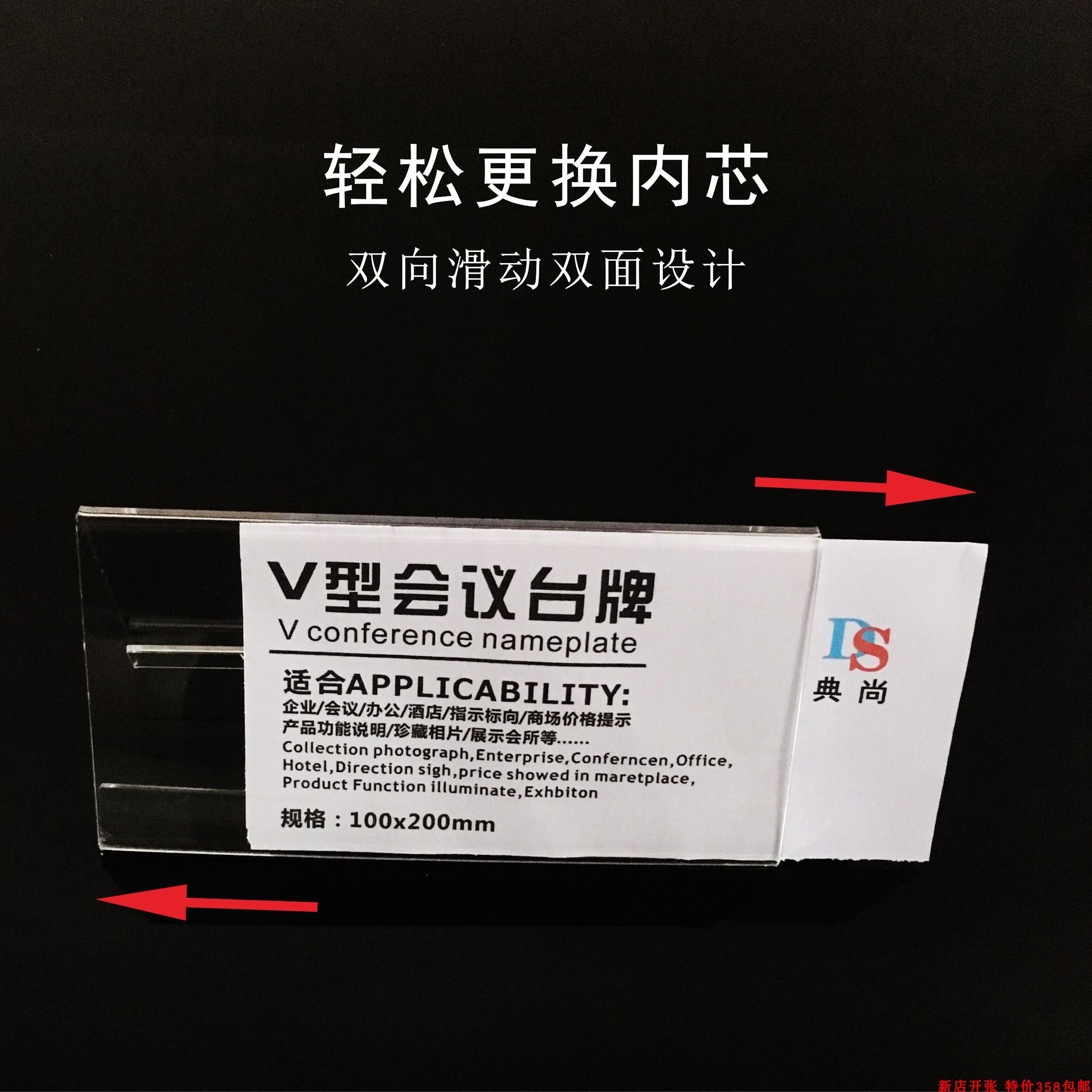 Customized delta conference card display frame V-type double-sided tableboard price card 8*12 acrylic
