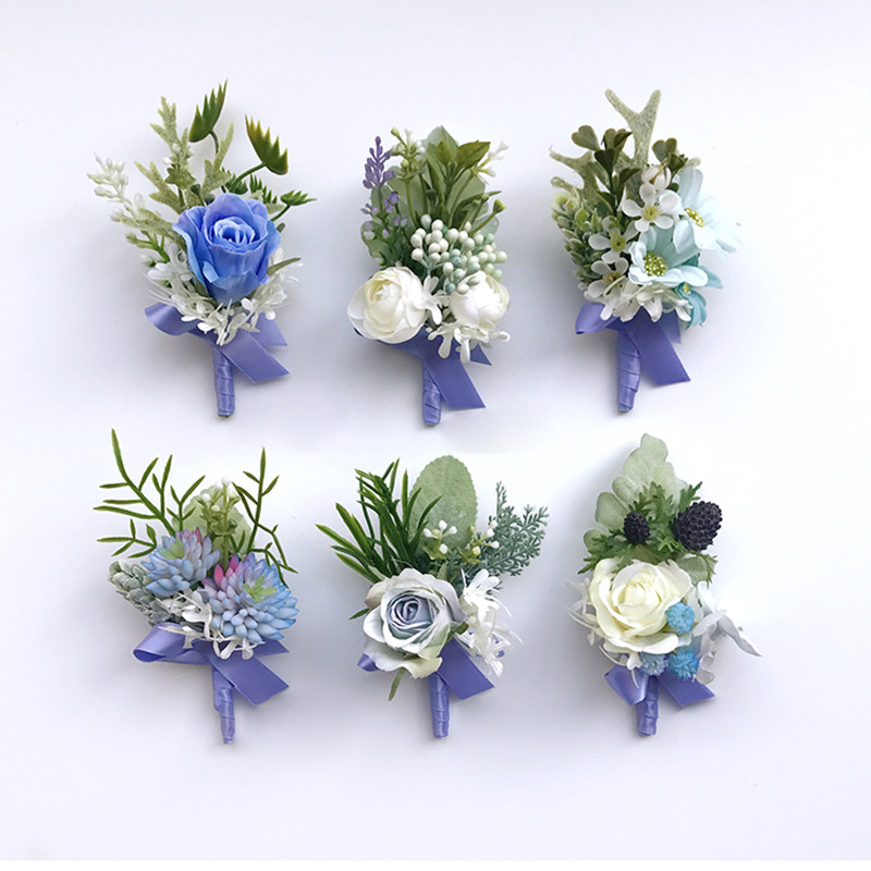 Blue and white rose Corsage Wrist flower Sen Bridesmaid Bride wedding photography Lapel flower Clothing coat gift box DIY accessories