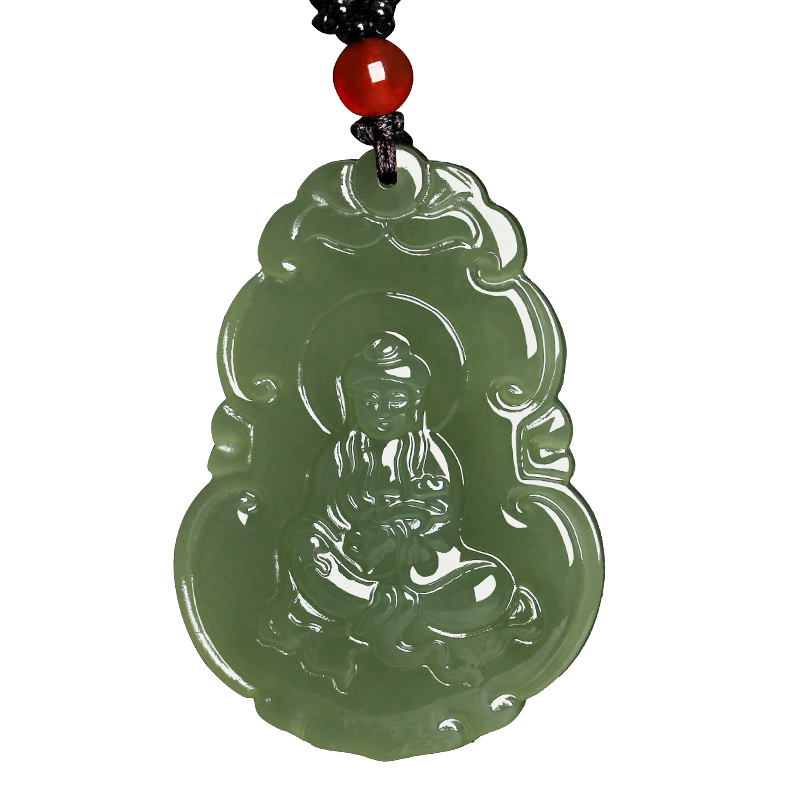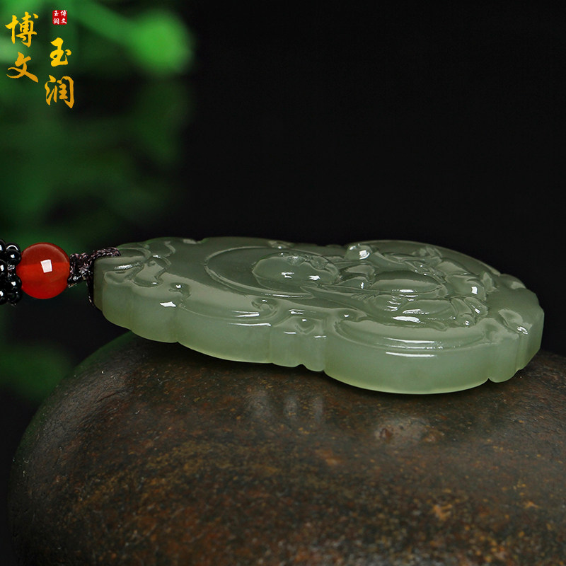 Natural Xinjiang Hetian Jade pendant Qingyu Guanyin Men's Jade Buddha female model couple pair of Peiyu jade jade jewelry