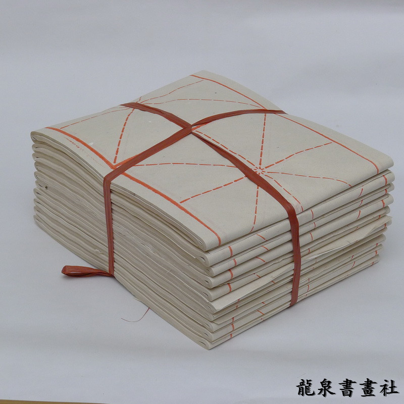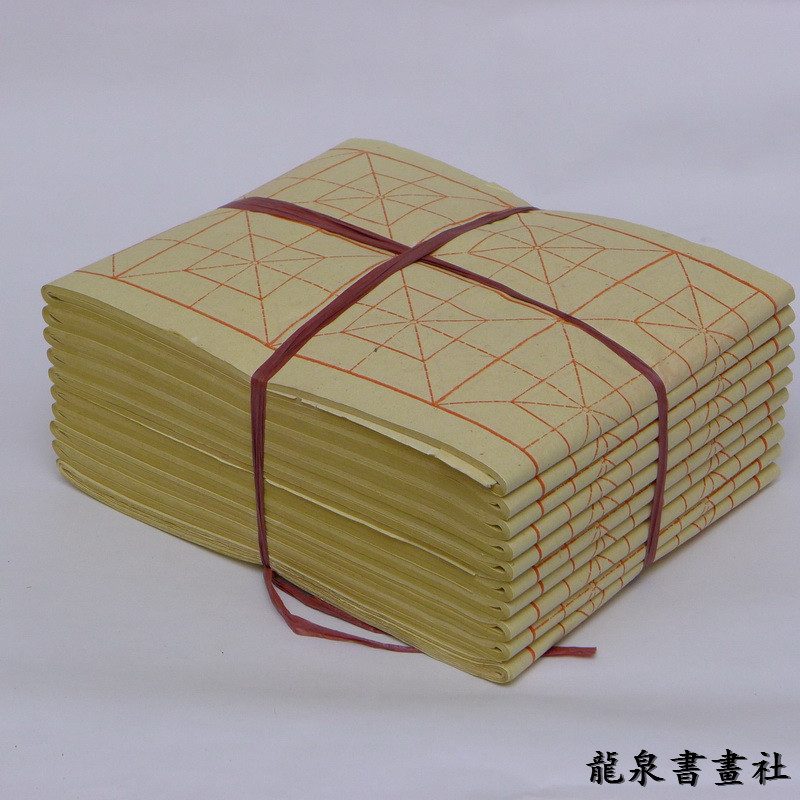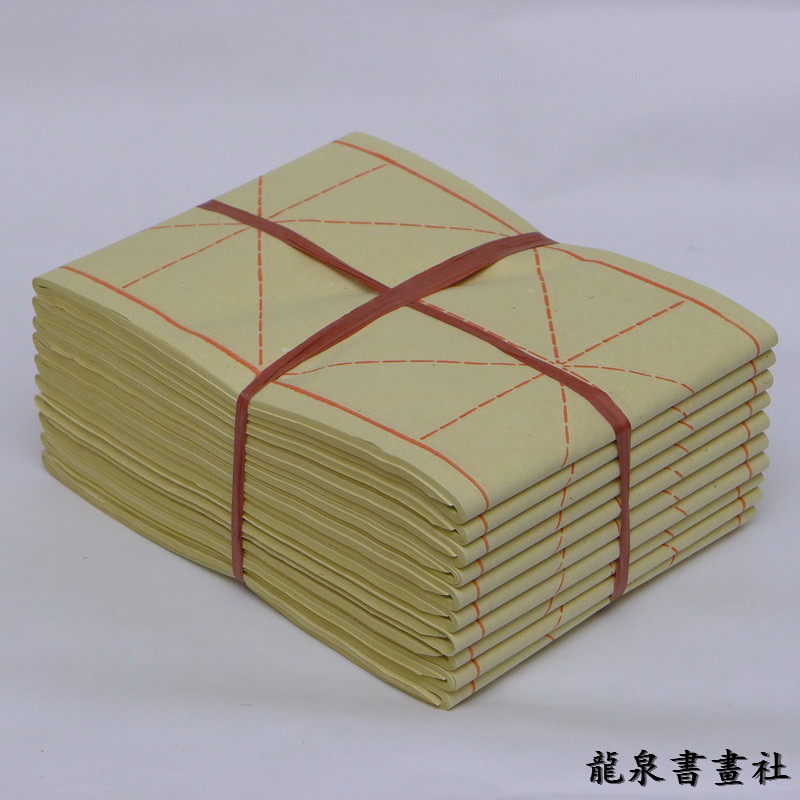 Longquan produced strip yellow mig raw edge paper big mig back to the palace grid 1 bundle of 10 knife calligraphy beginner practice paper