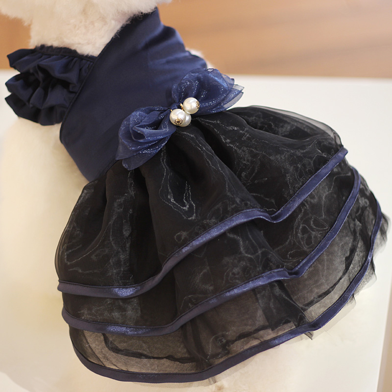 Designer's NICOVAER elegant slanted shoulder evening gown ~ Pet foreign doggy wedding gown Yorkshire spring summer