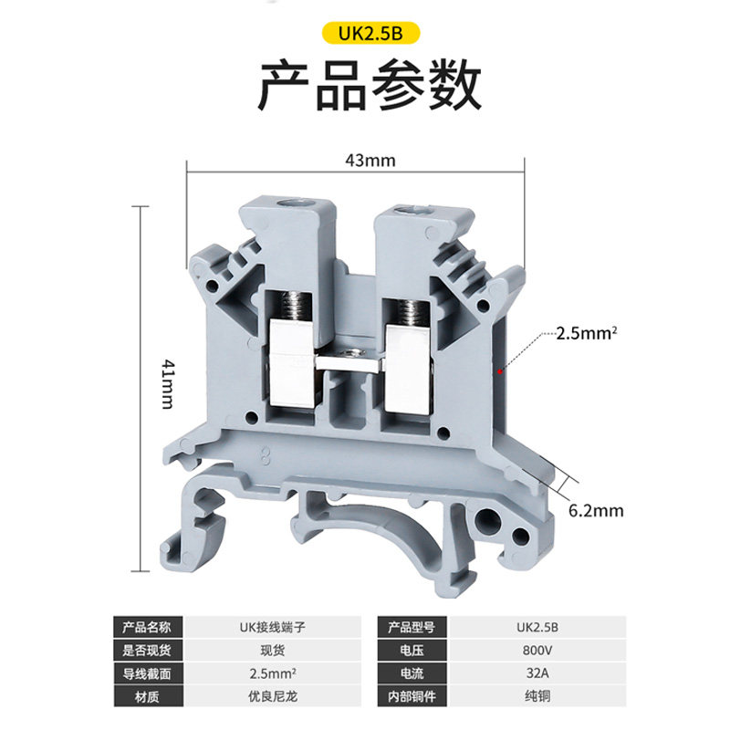 UK2 5B terminal block uk terminal row uk terminal block 2 5MM square voltage terminal UK2 5N