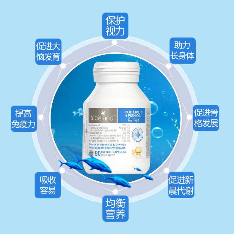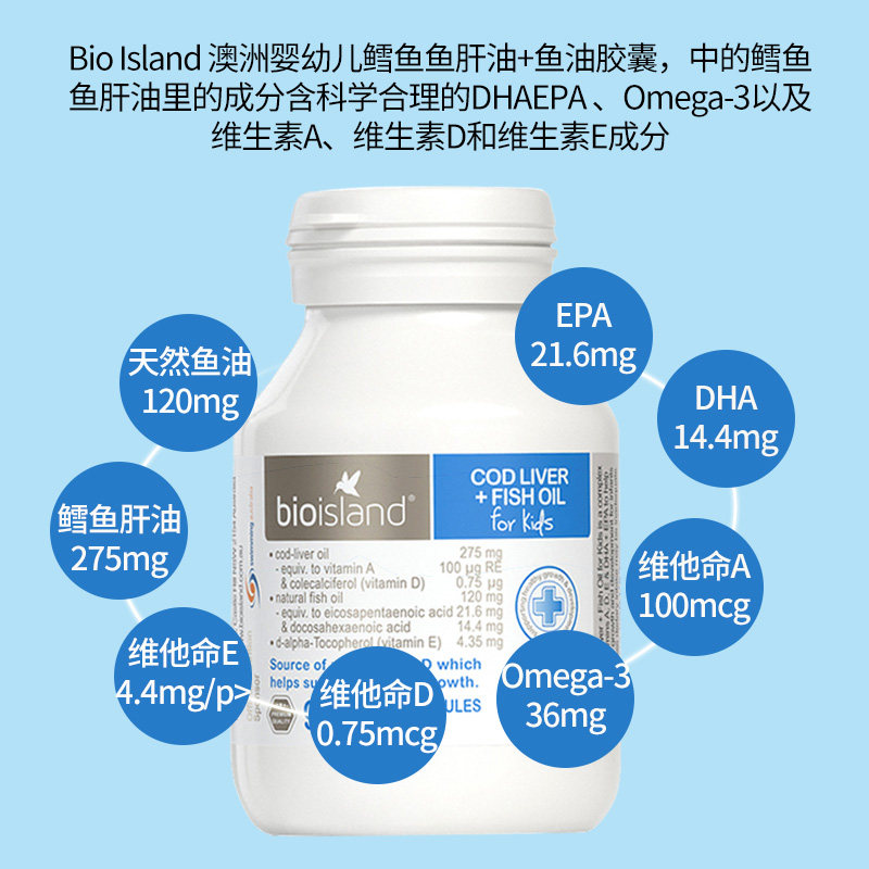 Australian Pharmacy authorized Bio island Children's Baby Natural Cod Liver Oil 90 DHA capsules