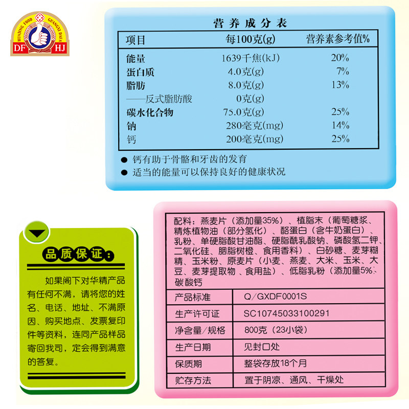 HJ Hufine oatmeal Cereal Milk Plus Calcium Cereal 800g pouch Packaged Instant Ready-to-eat Breakfast Nutritious meal Pink