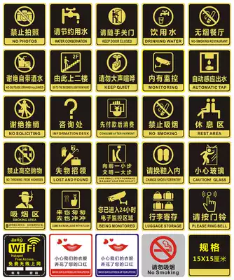 Black open door press button black go out please button Black please take the initiative to swipe the card in and out black press the doorbell Black has monitoring black no smoking black water saving black toilet Black
