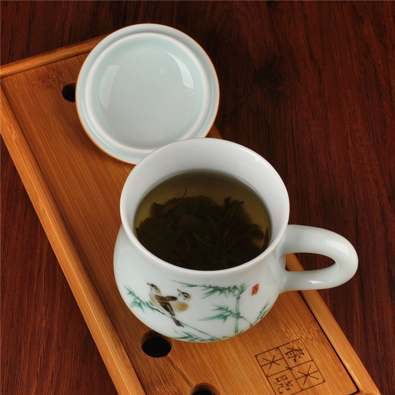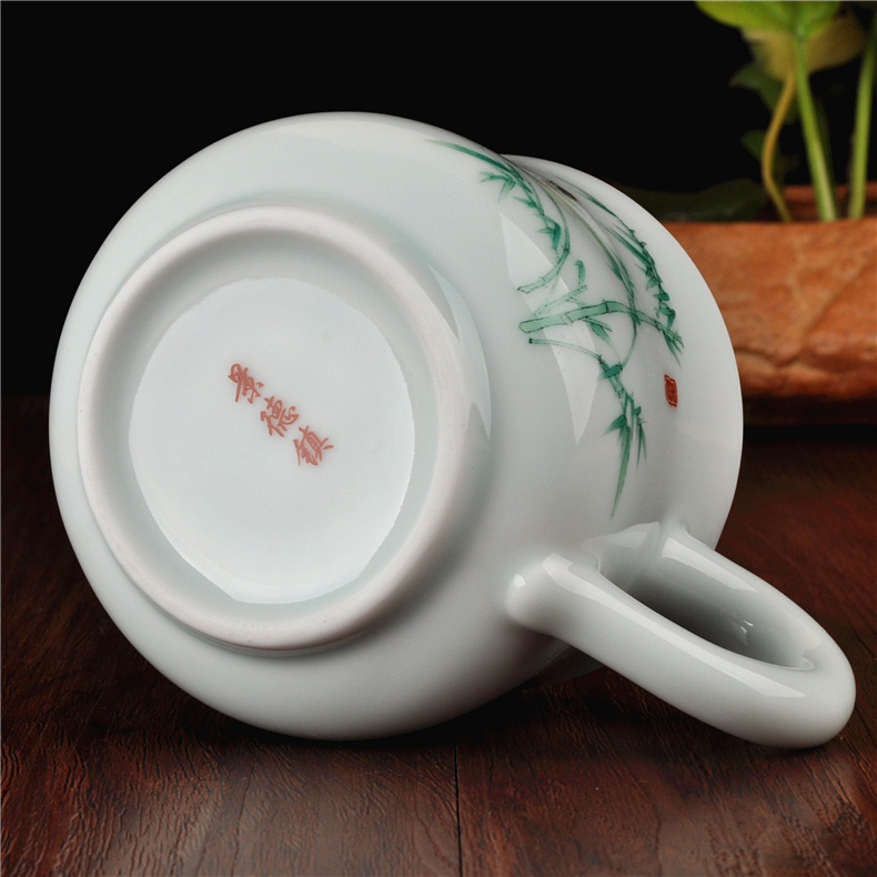 Ceramic Tea Cup Retro Green Glazed Cups Water Mug Office Cups With Lid Personal Cups Men And Women Porcelain Cups