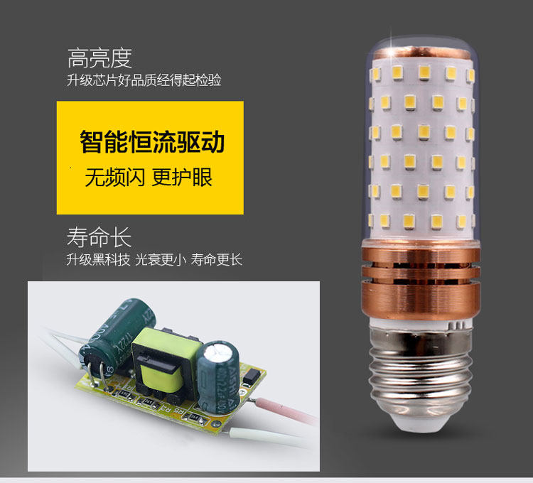 led candle bulb e14 crystal pointed corn lamp 12W16W ultra-bright light source E27 living room chandelier