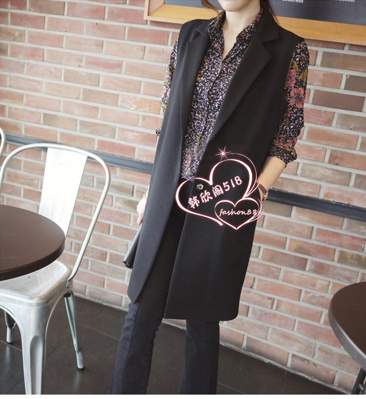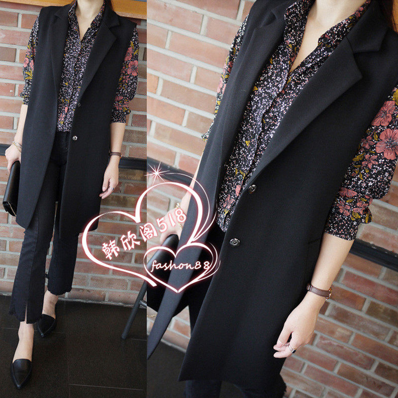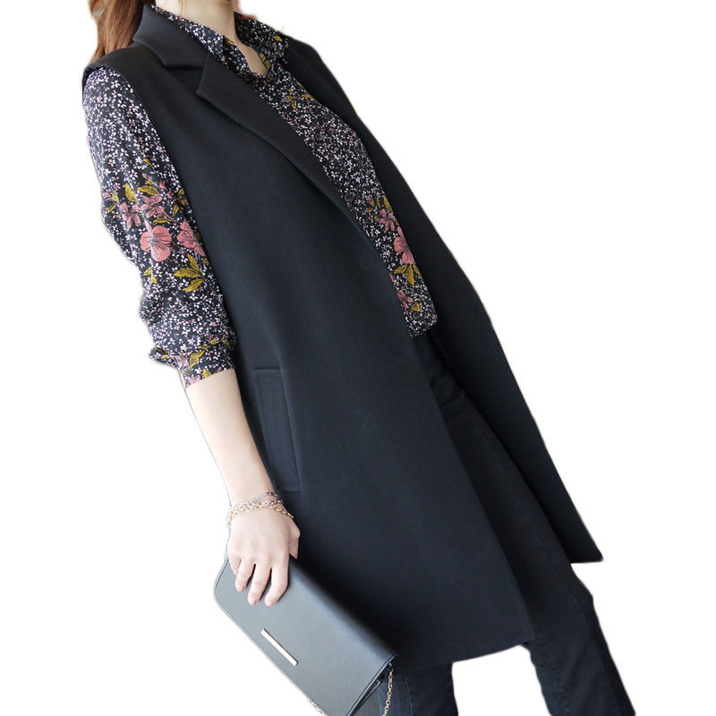 Spring autumn pure color medium long version of single-row waistcoat Korean version women's clothing black manmade vest suit big size waistcoat for women