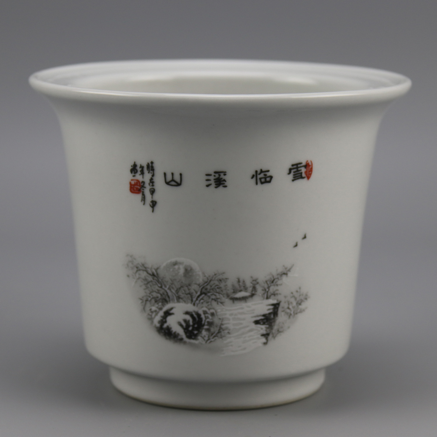 Retro Style Pink Snow Linxi Mountain Snow View Round Flower Pot Jingdezhen Antique China Antique Porcelain Antique swing piece