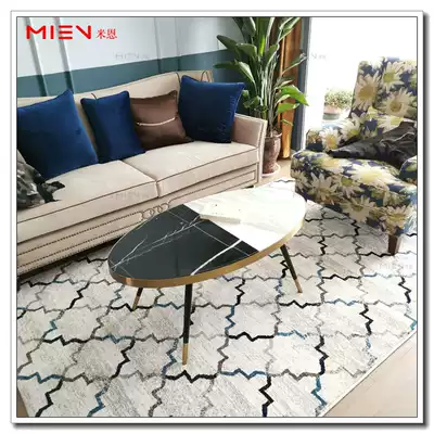 Oval tall coffee table black and white marble face size combination round a few living room Jazz white marble coffee table