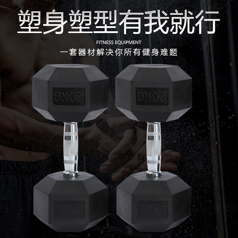 Hexagonal dumbbells 5kg 10kg 20kg plastic fixed dumbbells for women and men to practice arm muscles Home fitness equipment