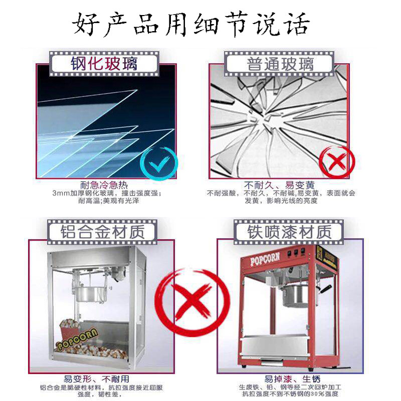Stainless Steel Popcorn Machine Red Flat Top Popcorn Machine