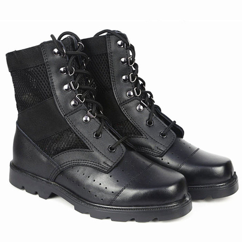 Spring Summer Season Combat Training Boots Airport Screening Shoes Men And Women Mesh Bull Leather Land War Boots Breathable Security Off-duty Overalls Boots