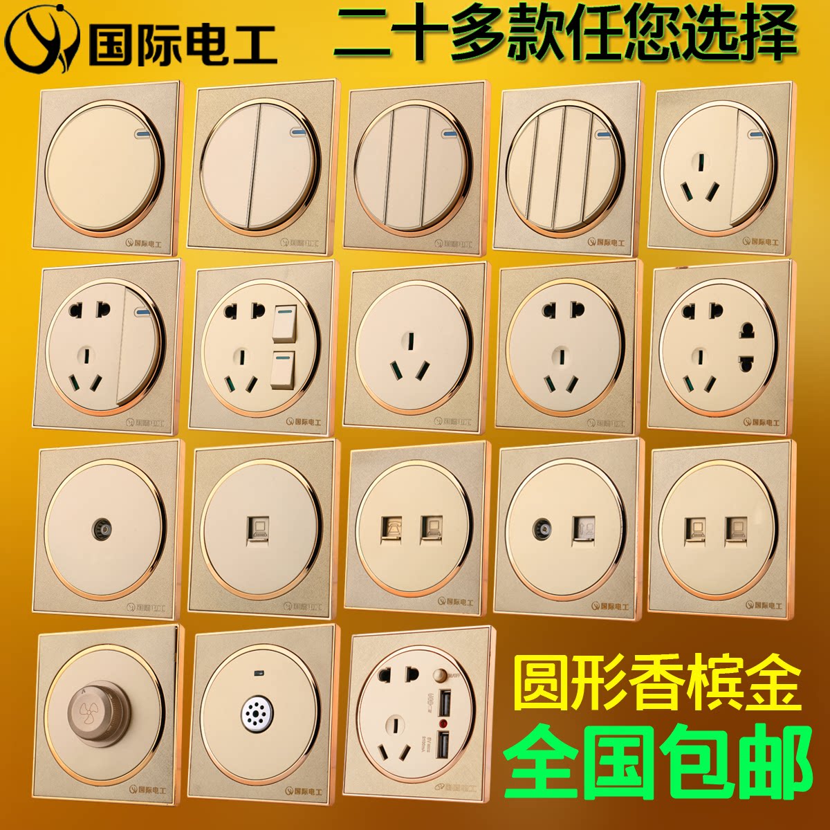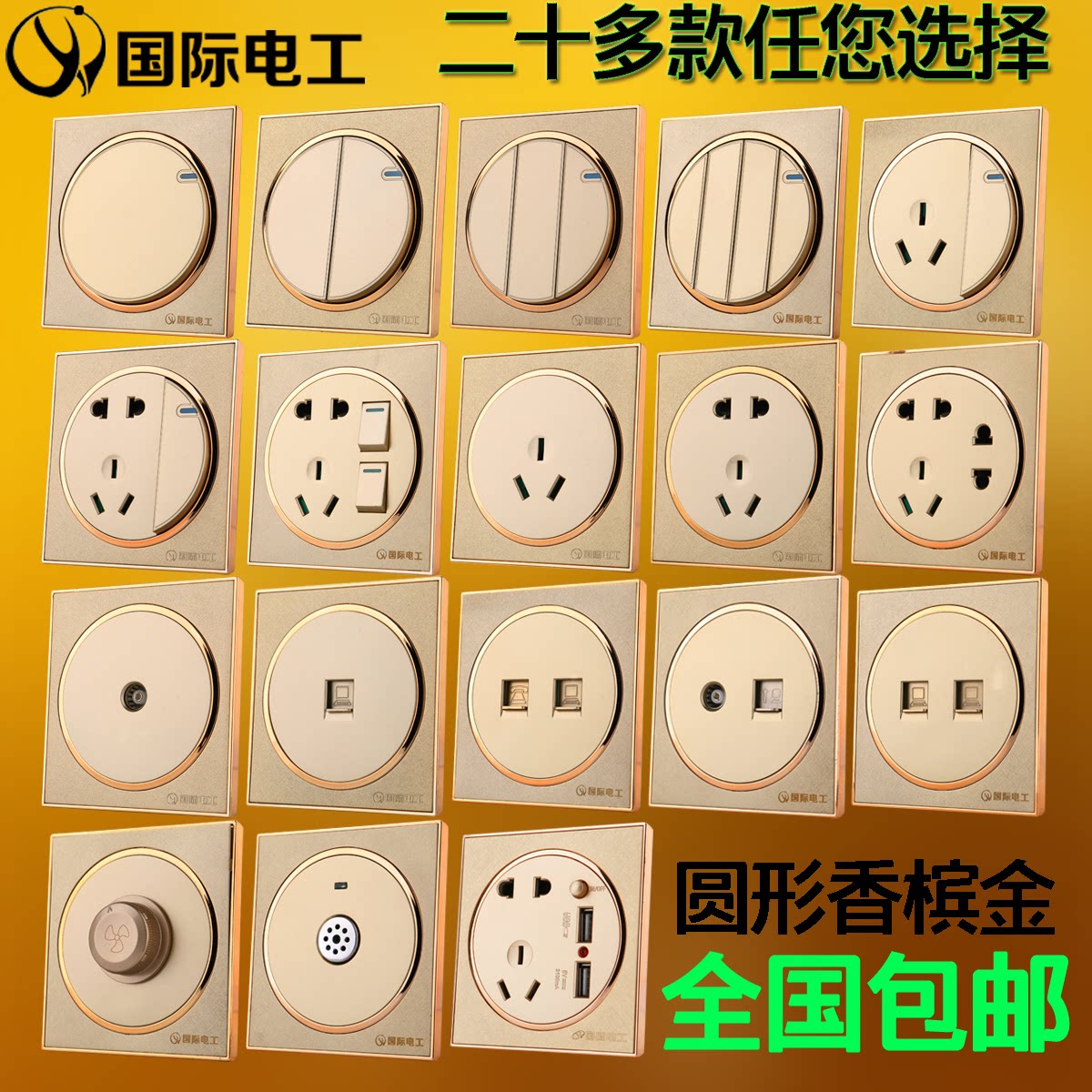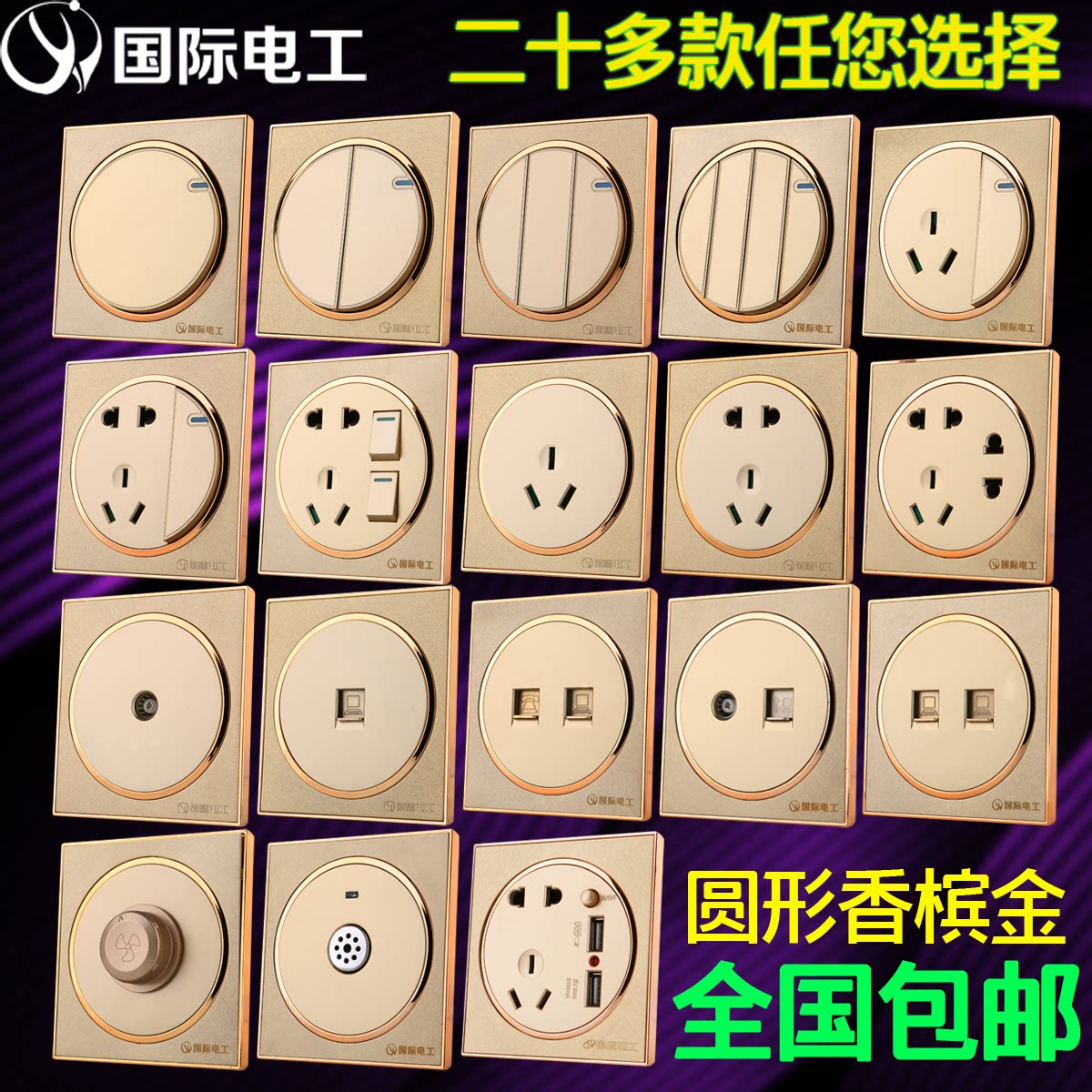 International electrician five-hole socket One open two open three open TV computer one open five-hole USB switch socket set