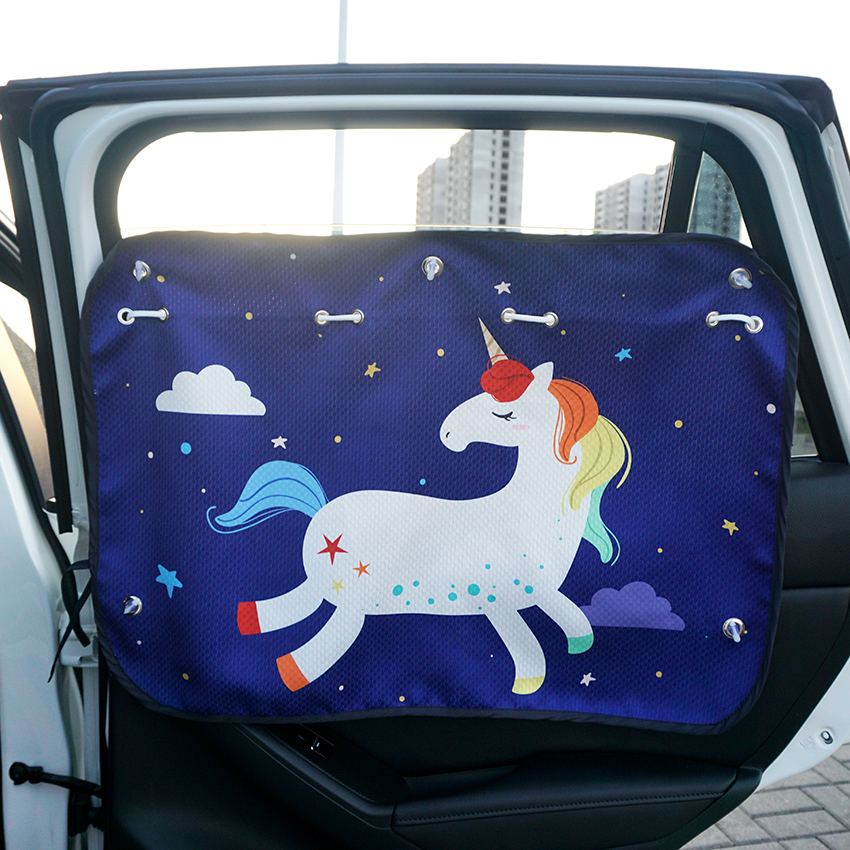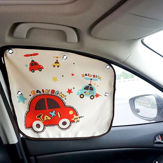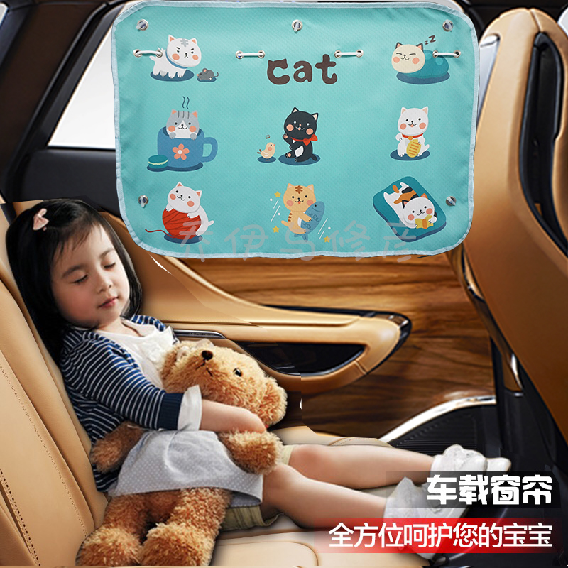 Car window sun-shading curtain cartoon suction cup type car shading curtain automatic telescopic sun protection side window heat insulation car curtains