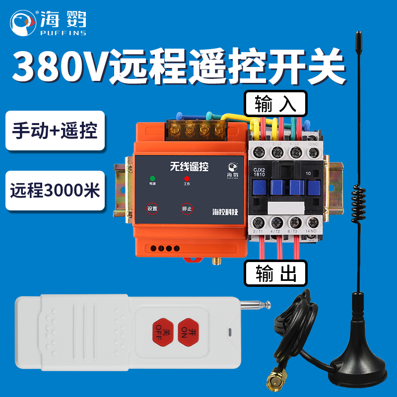 380V water pump wireless remote control switch remote high-power 4KW remote control manual double switch three-phase motor pouring to the ground