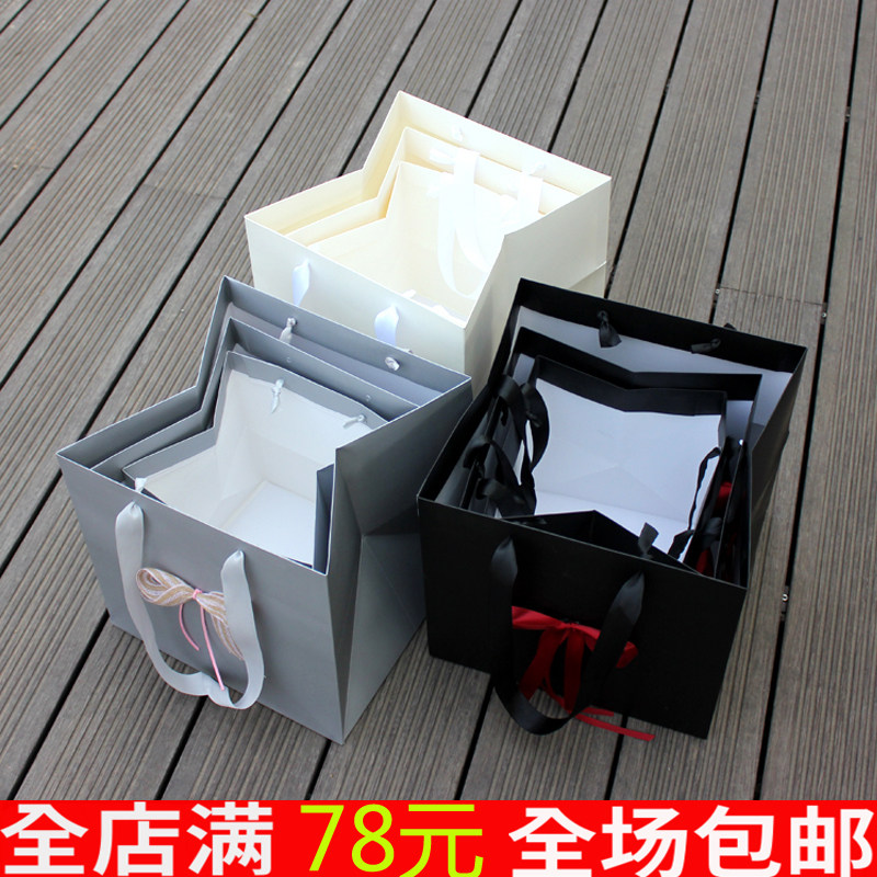 Square tote bag gift bag high-end black cardboard bag flower shop bouquet flower box packaging bag cake wedding gift bag
