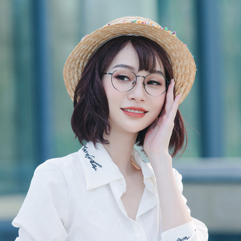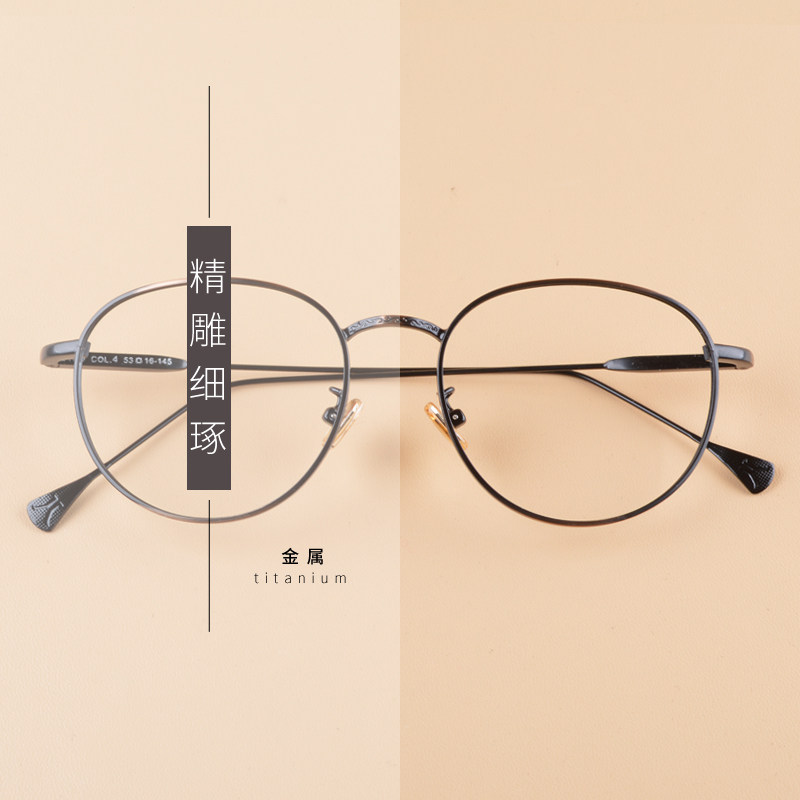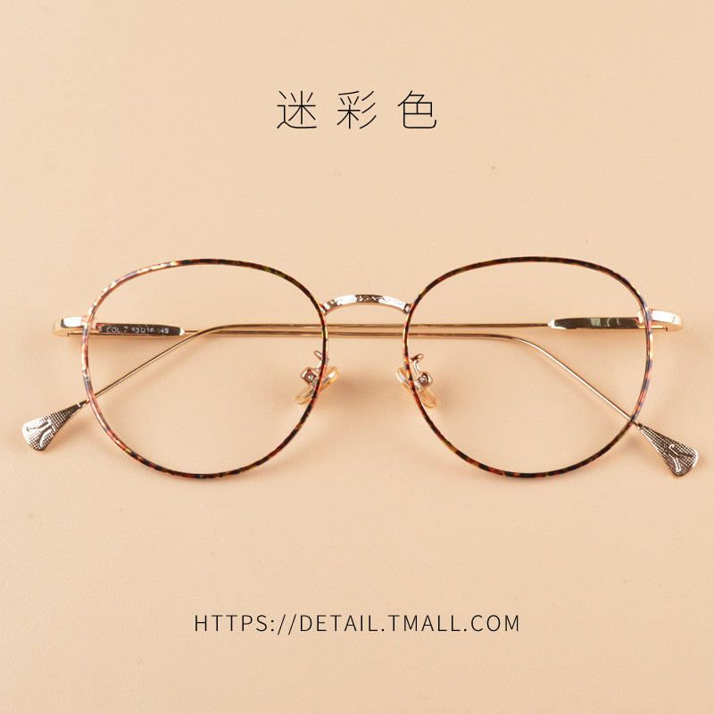 Titanium metal retro glasses frame fang blu-ray Korean version round thin legs eyes tide big face myopia glasses frame female
